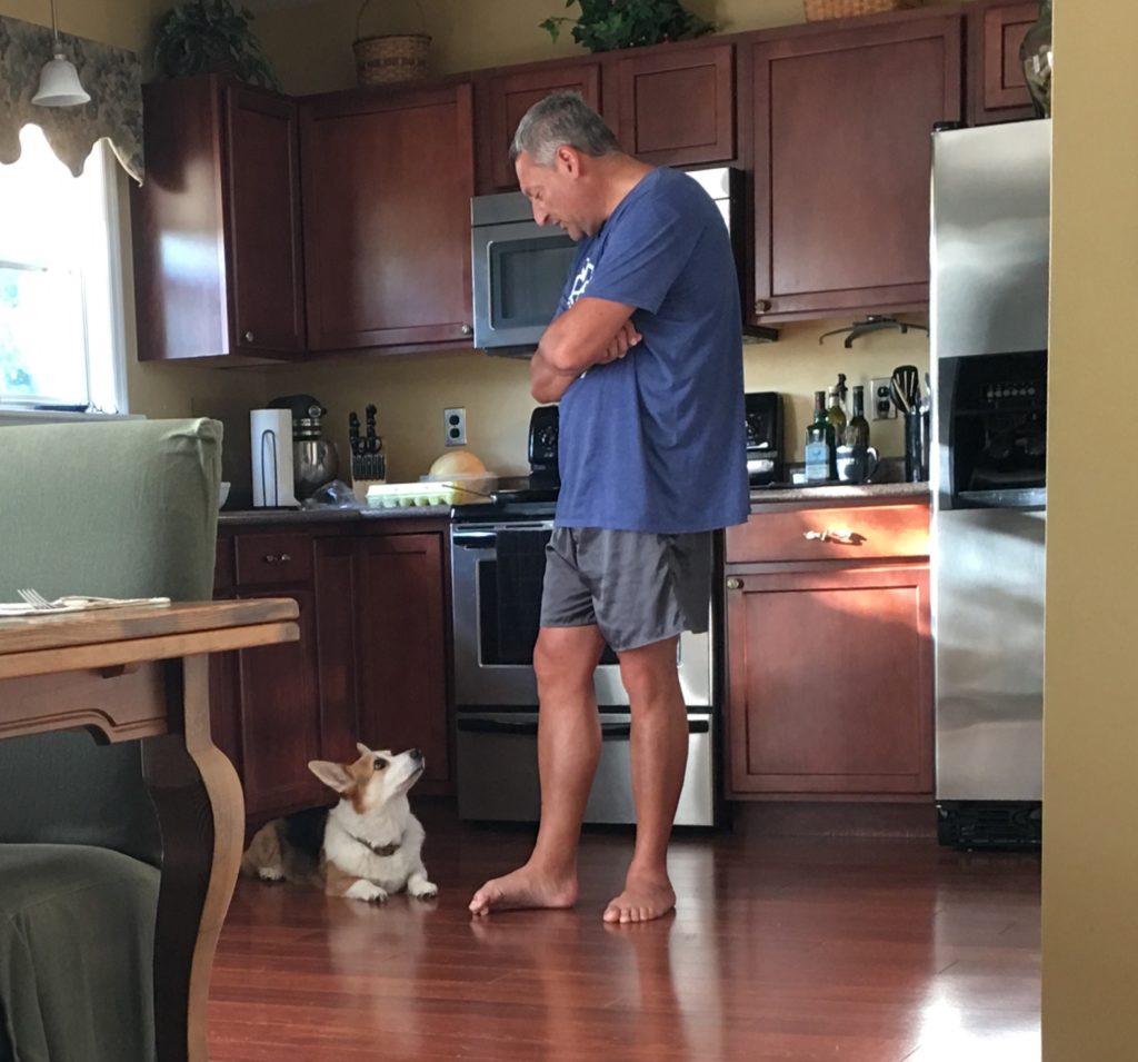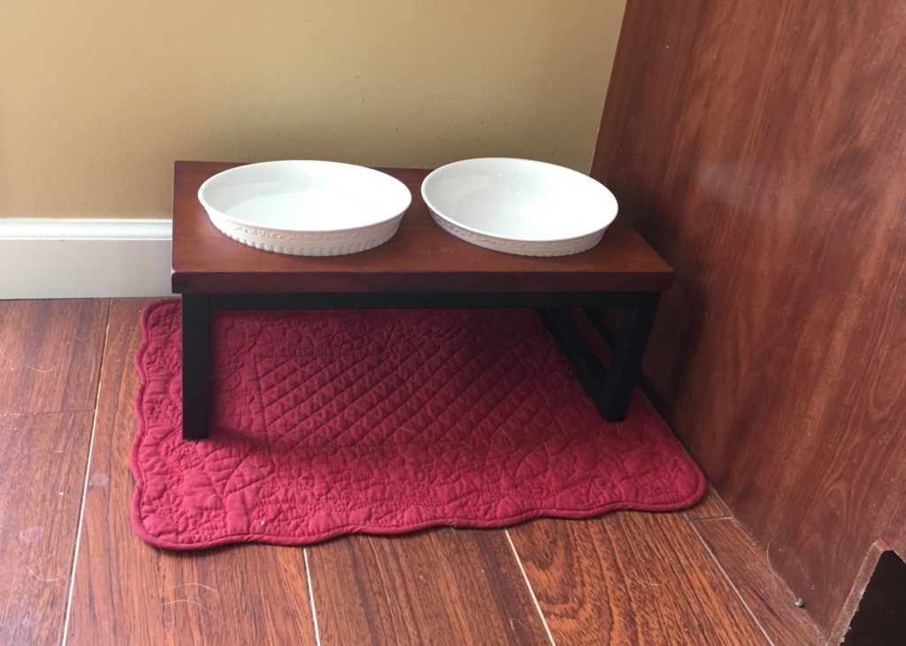 We’ve been using the raised feeding station for over a week now and I’m glad we got it. I’ve also changed out half his dry kibble for wet food which seems to slow down his eating. I have been petting him after he starts eating and then take and change his water bowl before he is finished. I’ve seen no signs of guarding when I do any of this. We have also taken to letting him lick our plates after dinner (he thinks it’s a treat!) after he demonstrates some of his tricks. Ben noticed that if he (Ben) starts to pet Indy while he is licking the plate that Indy will stop licking and just stand there. He does not do this when I pet him so maybe a sign of the resource guarding, so we will continue to work on that. On a really good note here, Ben has also told him to “leave it” on a few occasions and taken the plate back. Indy hasn’t liked doing it, but he leaves it, and after much praise gets the plate back.
