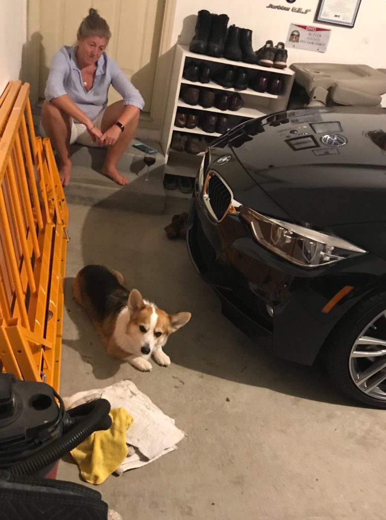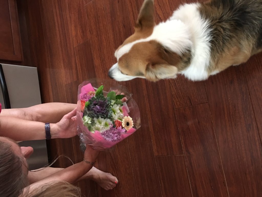 Indy continues to supervise all gardening activities, to include sniffing all the flowers (even the one daddy brings mommy), and his apparent mission to “water” every shrub in the yard. He is a regular hanging out in the garage with daddy and even has his own pillow now, so as to supervise in comfort.