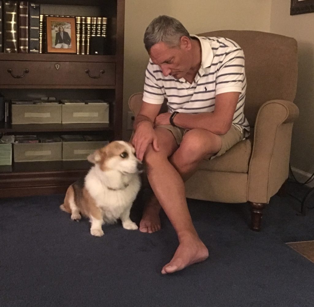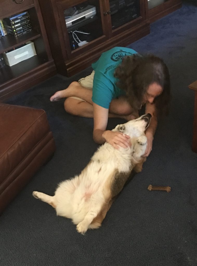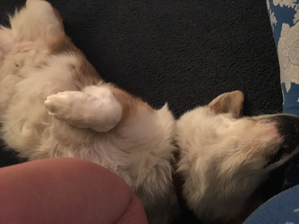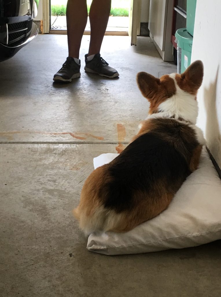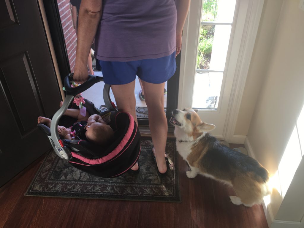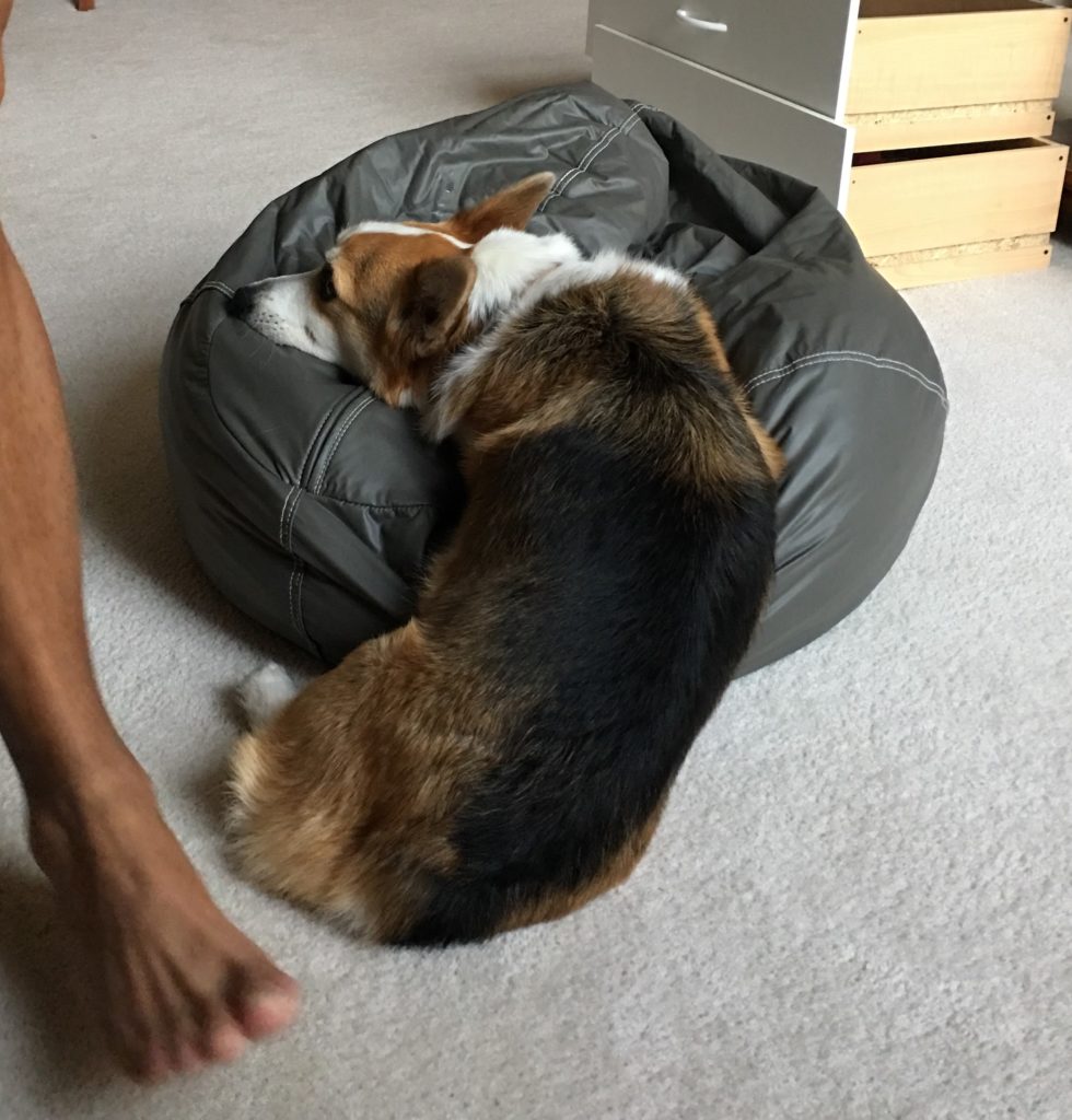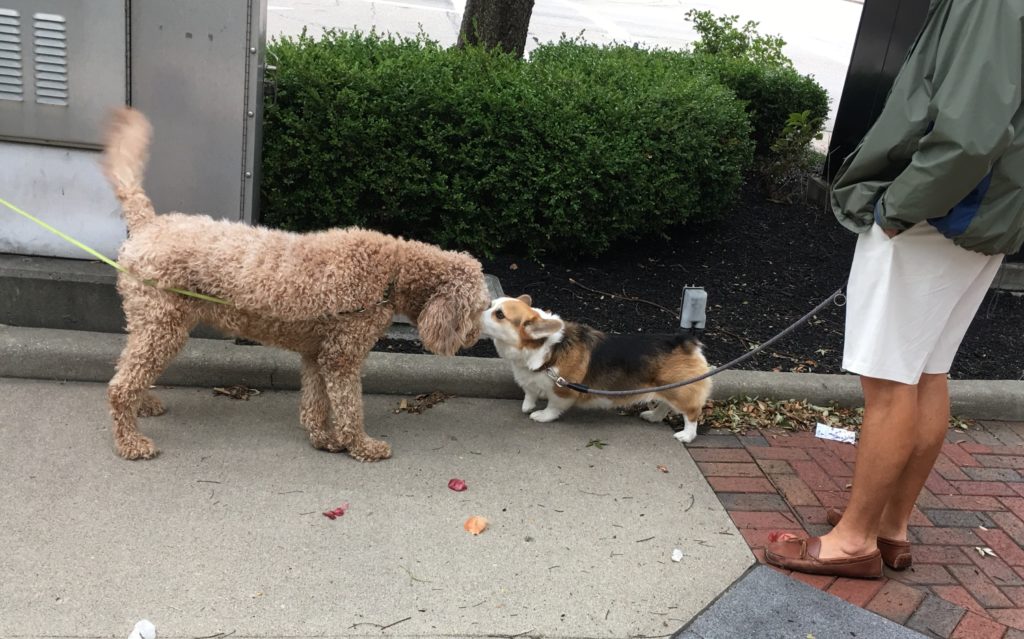 Indy has been our constant companion/supervisor. We continue to work on his behavior around food, socialization with other dogs, socialization with smaller humans (to a lesser extent), and his leash manners. After more rides in the car, both short and long, Indy is much less anxious and just seems bothered by that short leg problem of not being able to see everything. He is no longer scared of the goldendoodle at the farmer’s market, and is quite agreeable to checking each other out. She even barked at him this weekend and he wasn’t bothered. A huge improvement over the shaking and cowering that happened the first time.