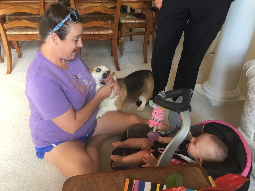 He spent a few heavily supervised hours with some very good dog-mannered girls (and one very interesting smelling baby, lol).